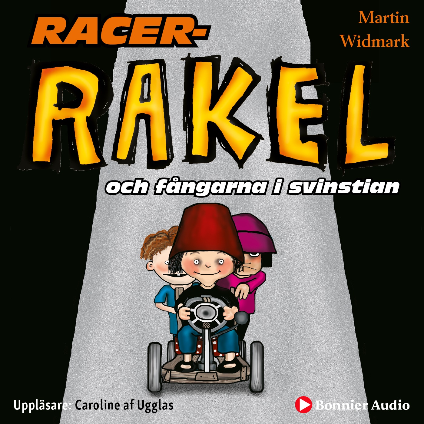 Rakel och hennes kompisar bygger en lådbil på gården. Då dyker Ryslige Roland och hans två busar upp och utmanar dem på en rallytävling. Med vrålande motorer och snabba racerbilar drar ett spännande äventyr igång. Ryslige Roland ser ut att leda tävlingen. Det vill säga, ända tills läskiga tant Lyckholm och hennes grisar dyker upp. Så kan det gå om man fuskar! Racer-Rakel och fångarna i svinstian är den tredje berättelsen om Rakel och hennes vänner. De första böckerna, Sjörövar-Rakel och kapten Snorfinger och Riddar-Rakel och de tre stordåden har blivit enormt uppskattade, av såväl barn som vuxna.