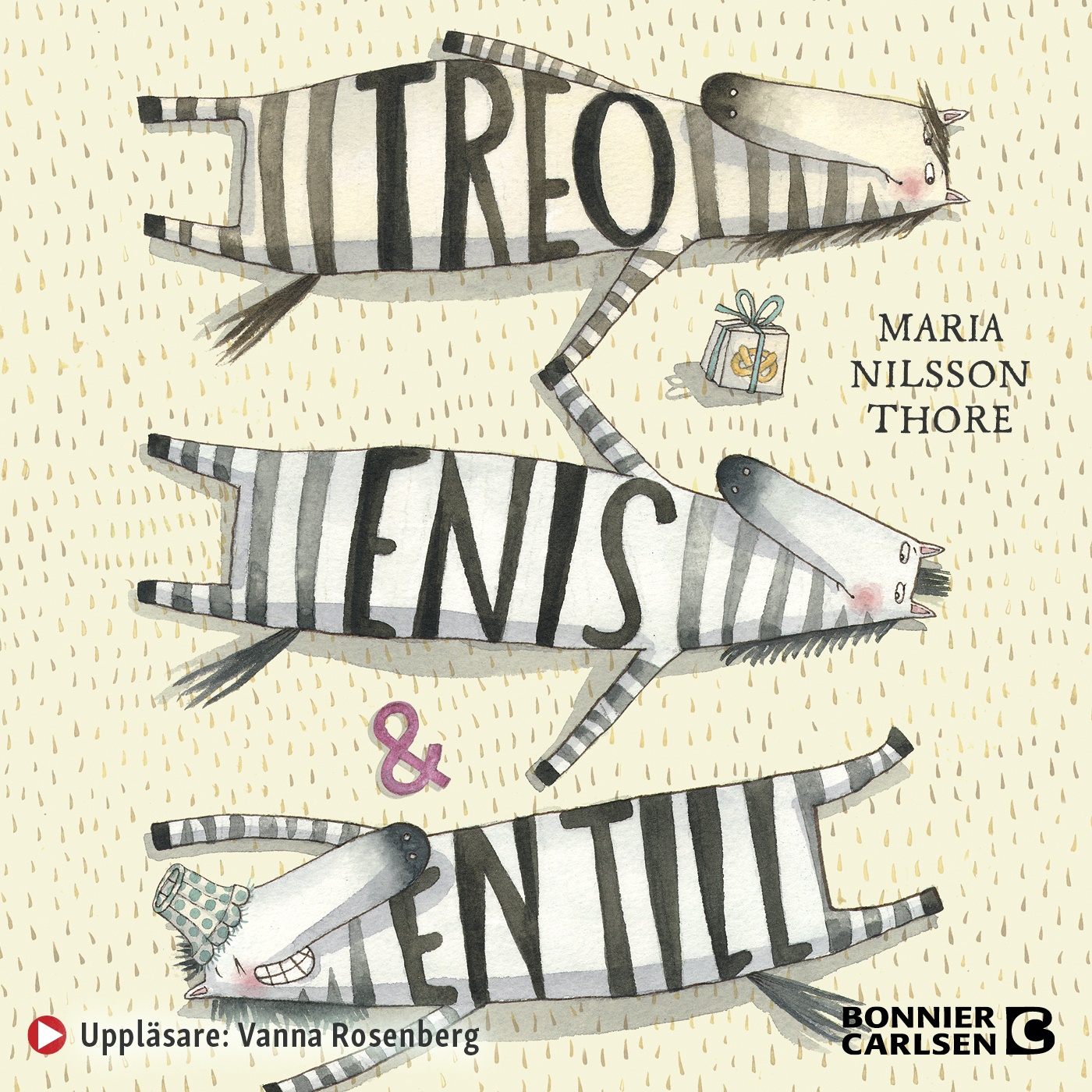 Maria Nilsson Thore är tillbaka med ännu en oemotståndlig bilderbok. Möt Treo och Enis, två zebror som lever i en hopplöst långrandig tillvaro tills en dag då ett missförstånd ställer allt på ända. Det ena knasiga upptåget avlöser det andra och snart står det klart att livet aldrig mer blir sig likt för Treo och Enis ... och en till.